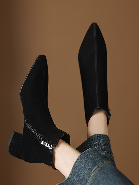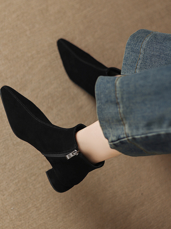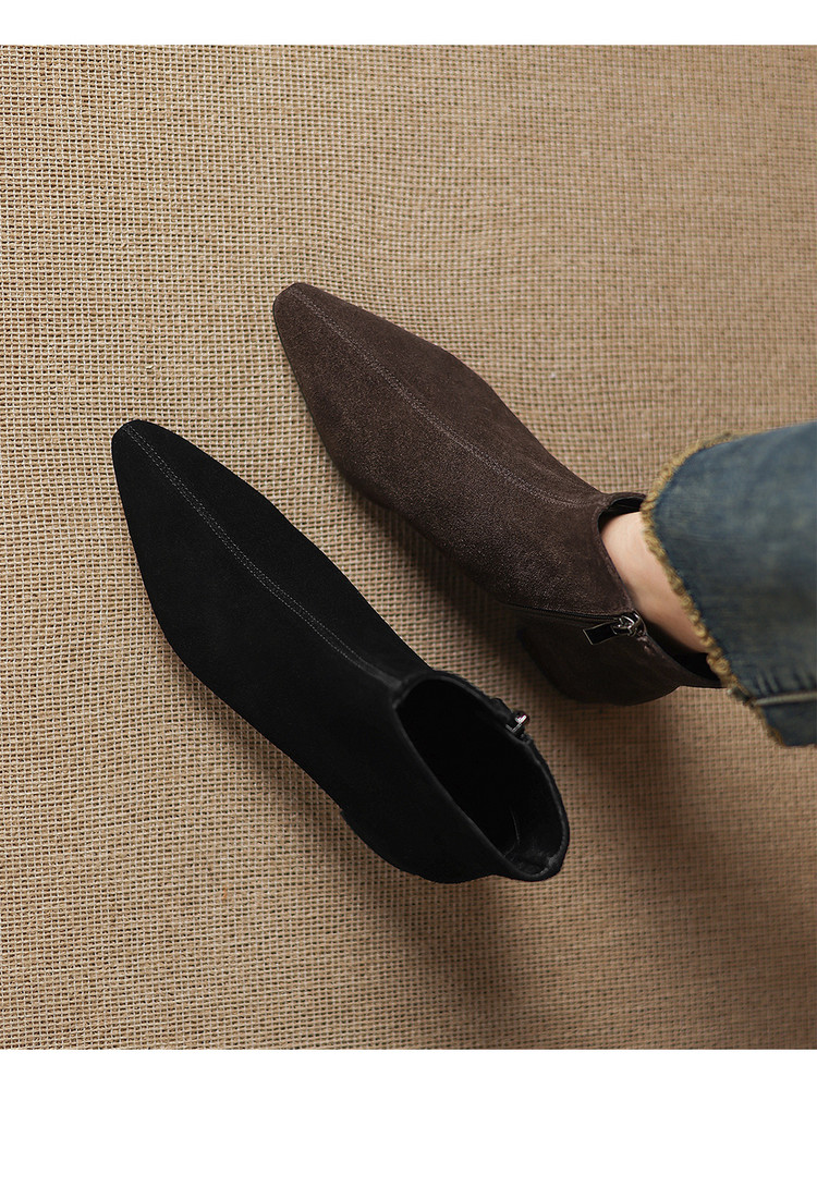 Low-heeled Cowhide Suede Women's Ankle Boots