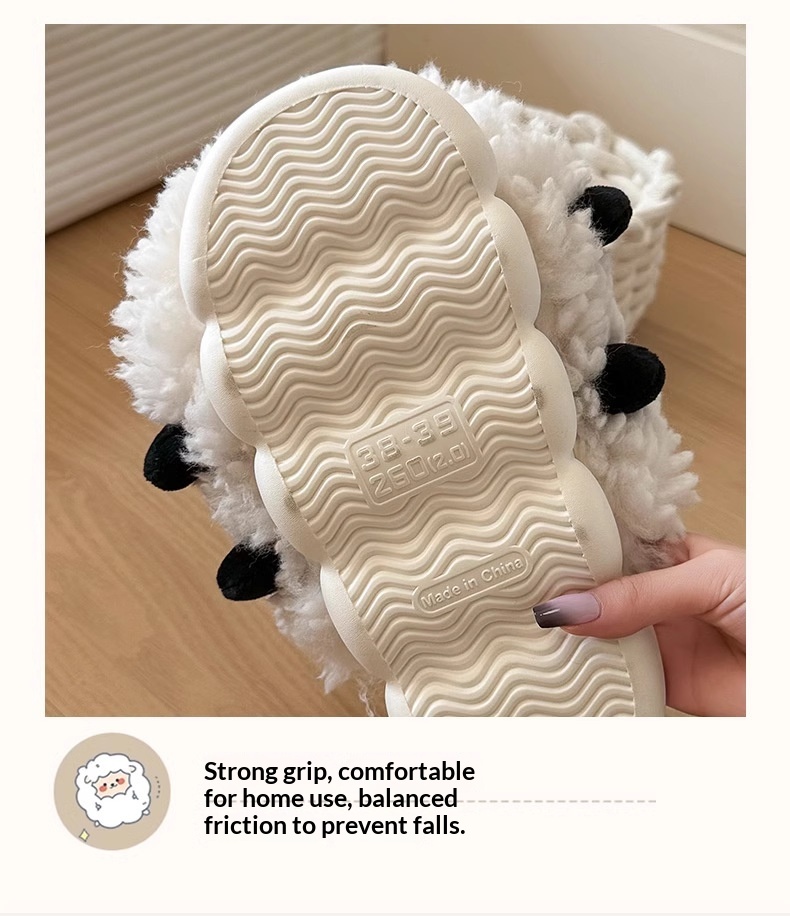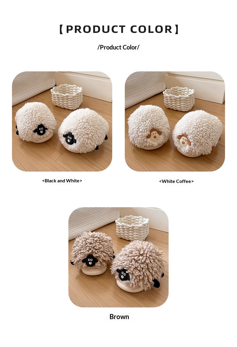 New Women's Winter Cartoon Sheepskin Cotton Slippers For Indoor Wear
