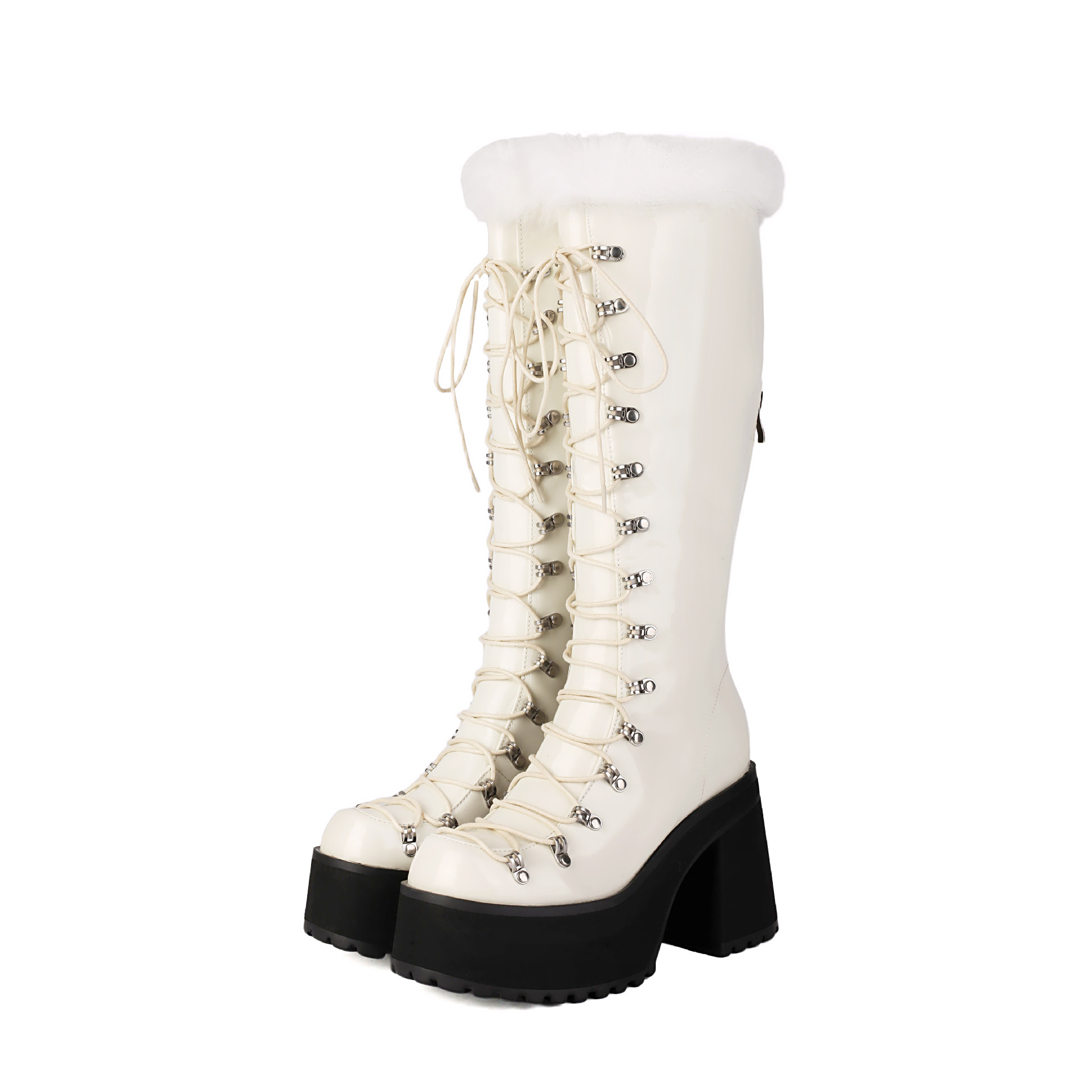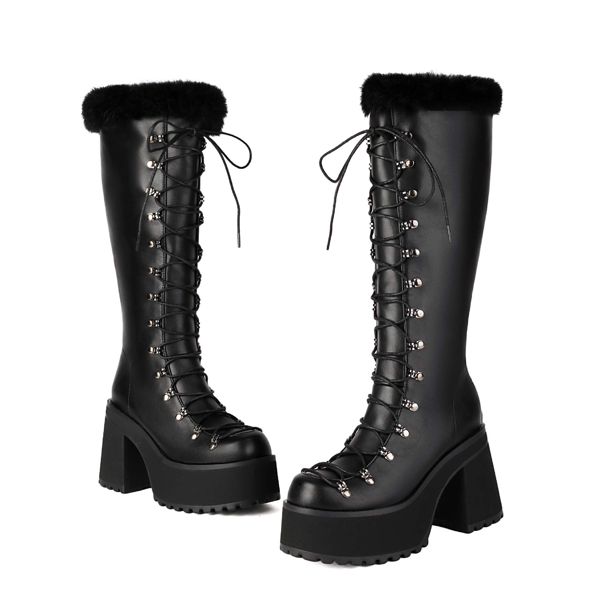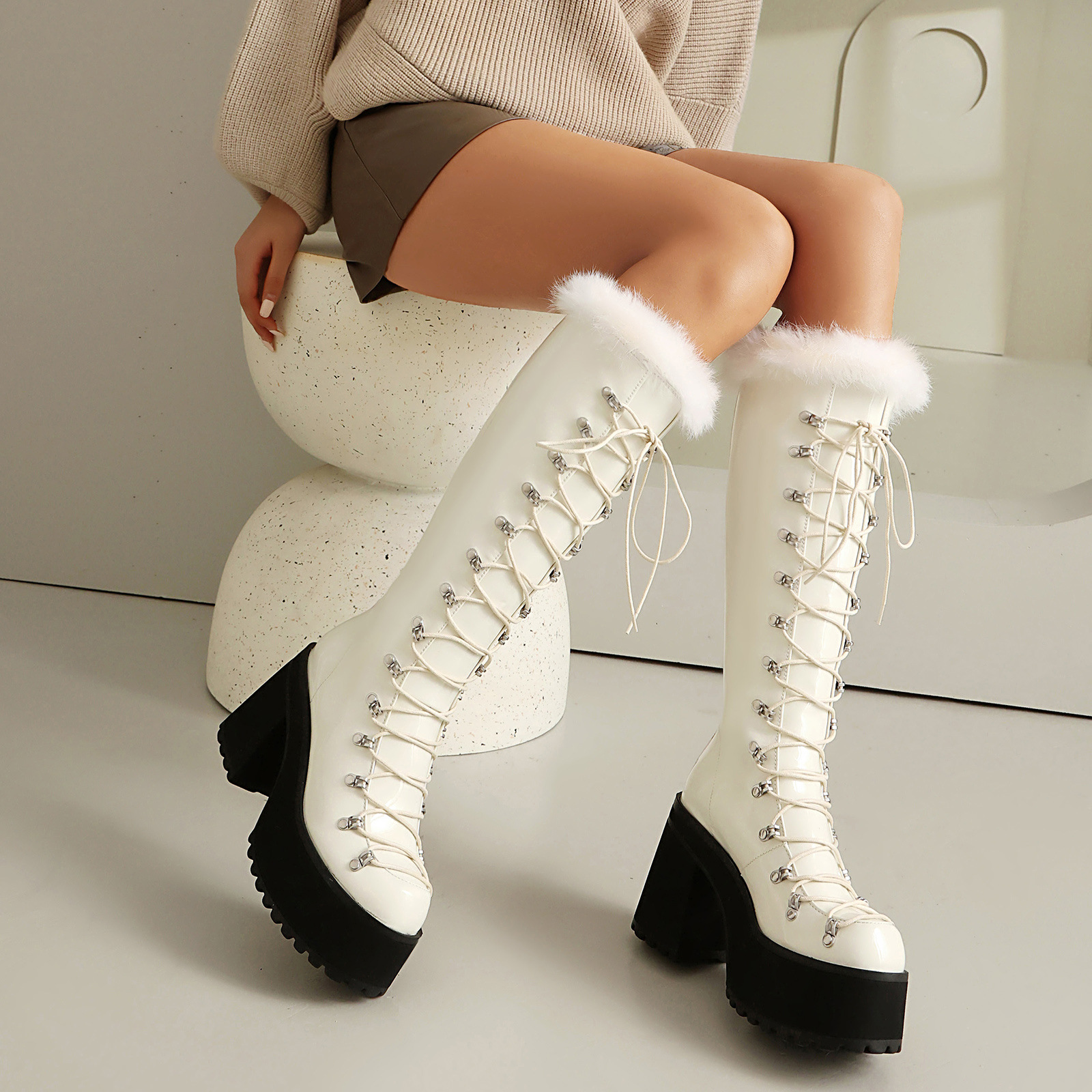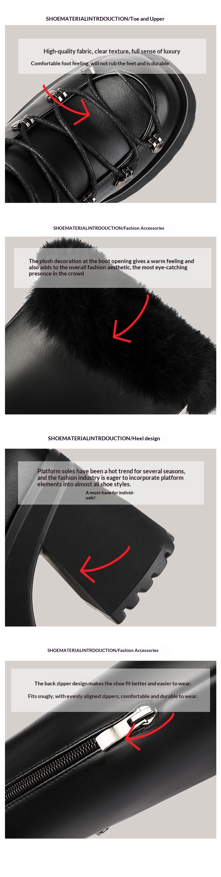 Women's British-style Casual Boots With A Fur Collar And Laces