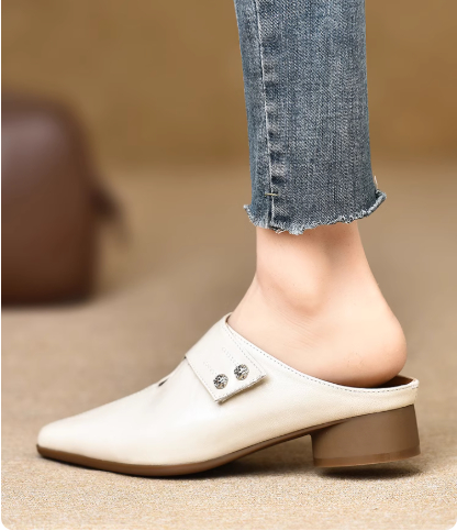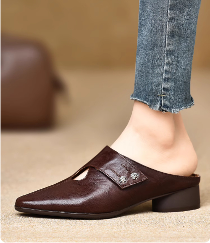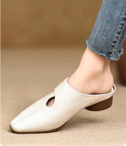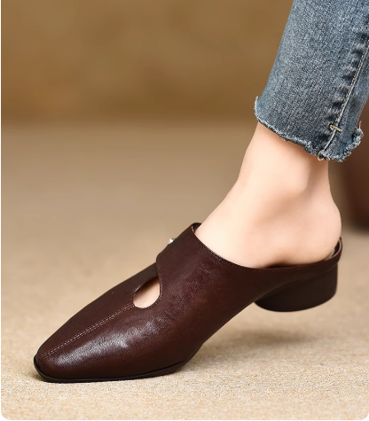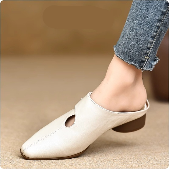Women's Slip-on Slippers With Hand-stitched Pattern Made From First-layer Sheepskin