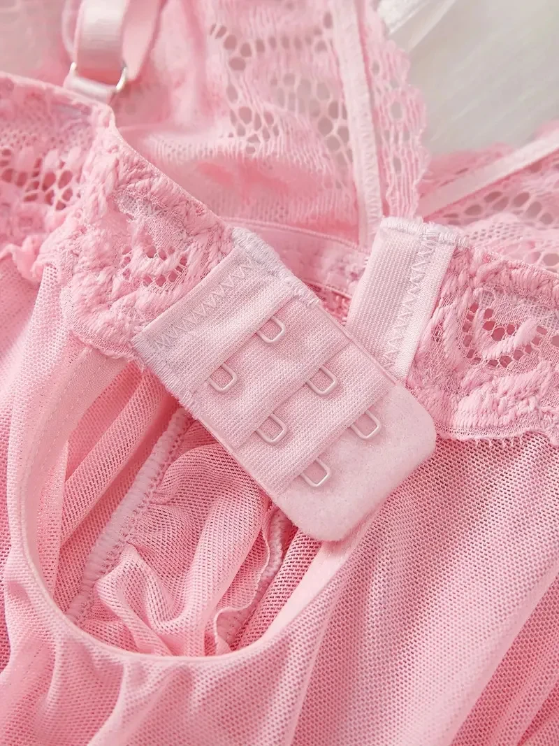 Transparent Red Sexy Lingerie Women's Underwear See Through Sleepwear Lace Nightdress And Panty Pijamas Sets Female Sexy Nighty