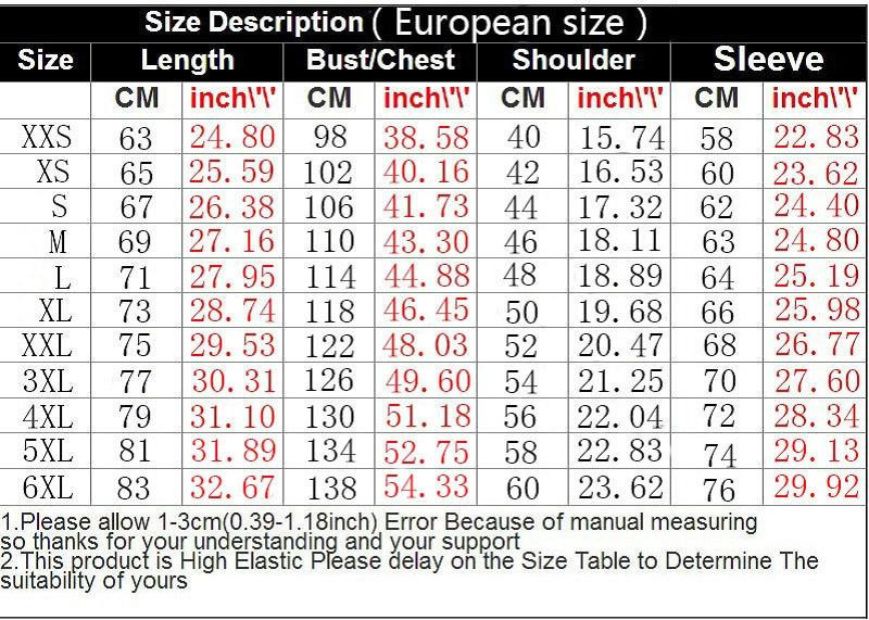 Sizes: XXS, XS, S, M, L, XL, 2XL, 3XL, 4XL, 5XL, 6XL