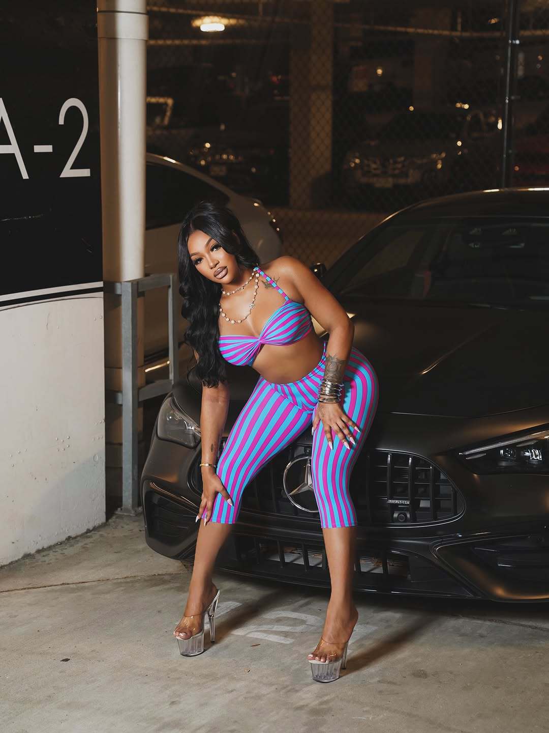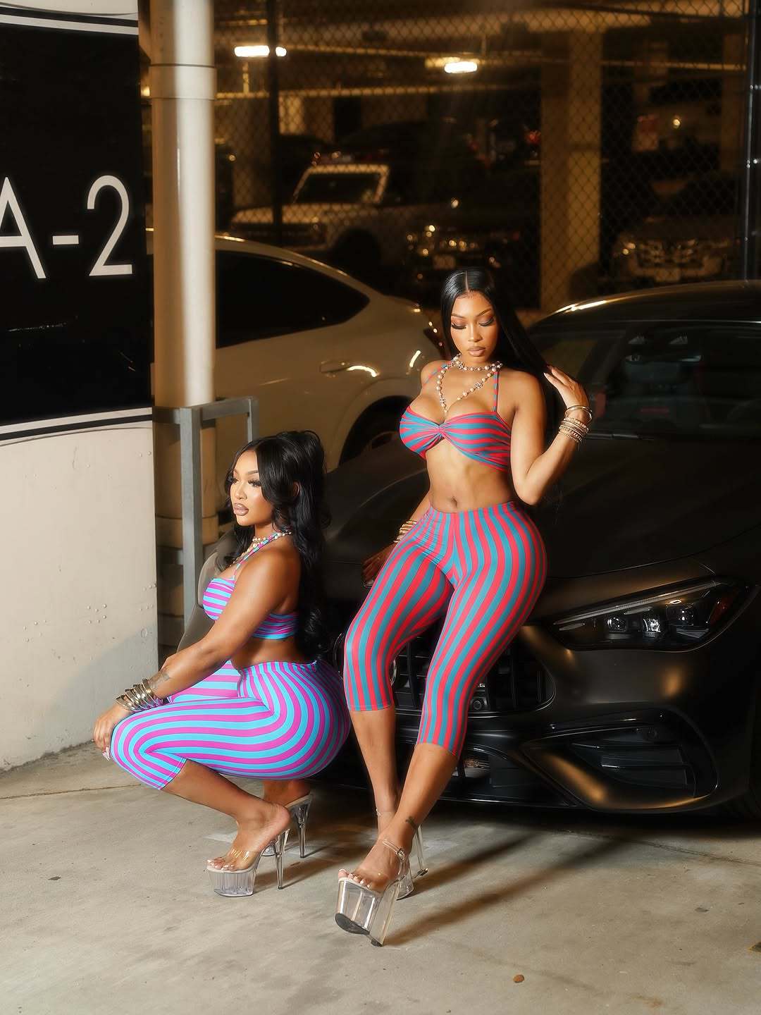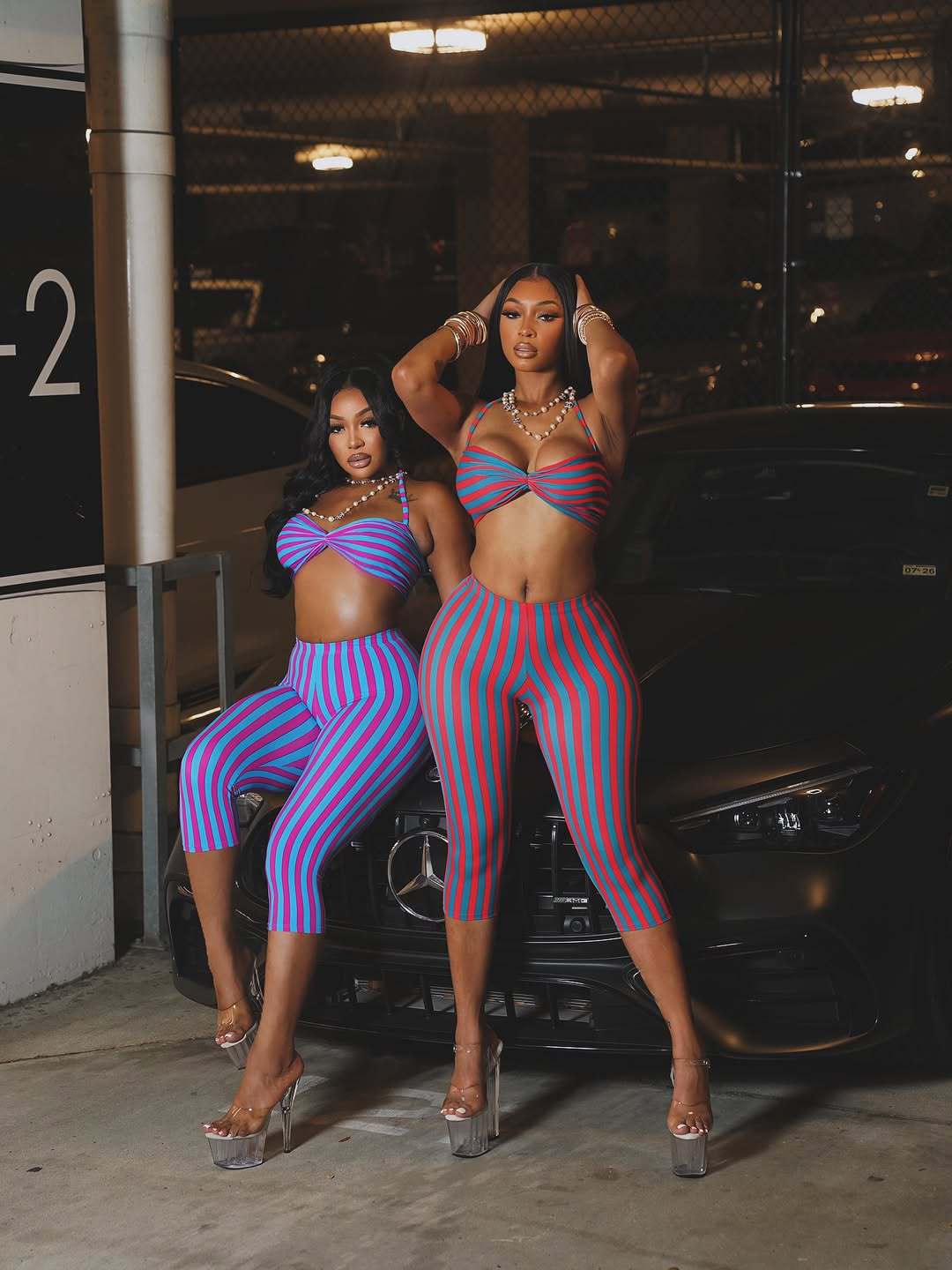 Fashionable Vacation Striped Contrasting Color Slim-fit Sexy Cropped Halter Top And Capri Pants Set
