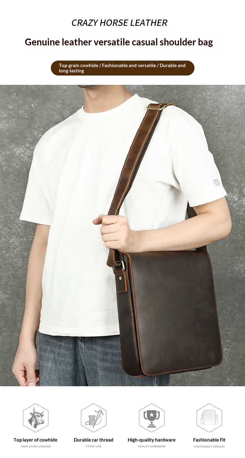 Men's Premium Leather Crossbody Bag, Sophisticated And Casual Single-shoulder Design