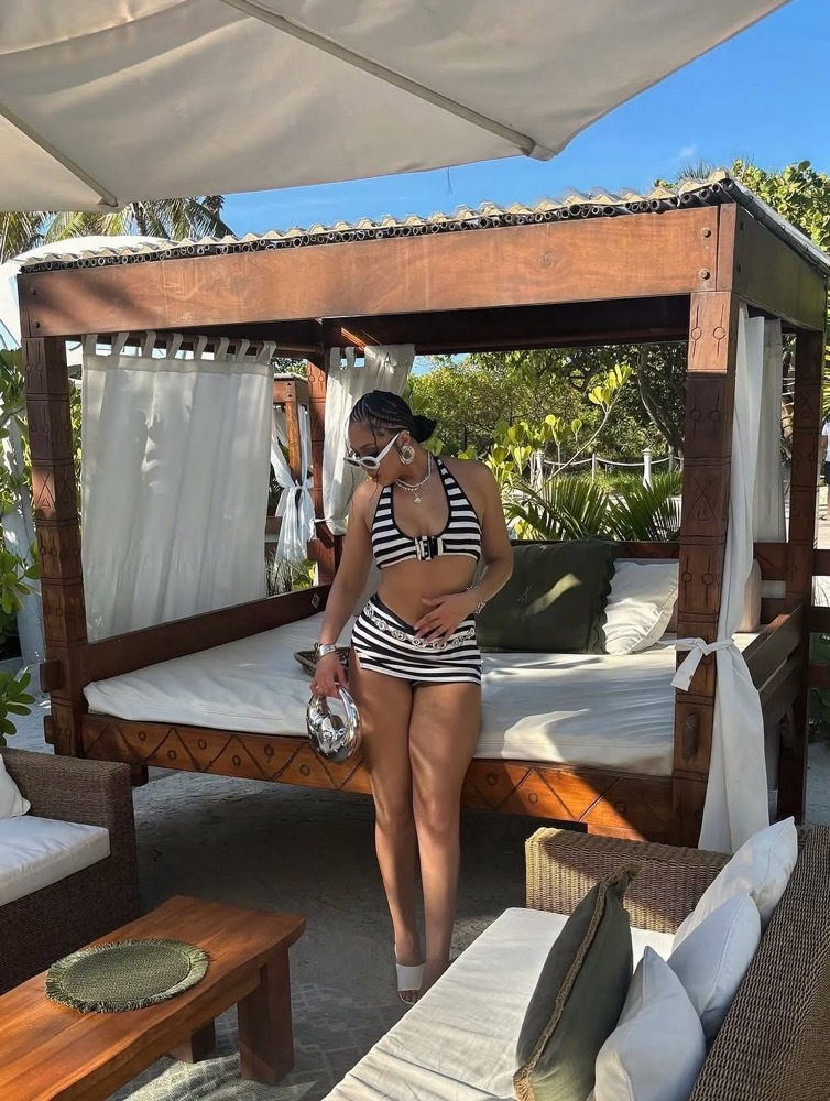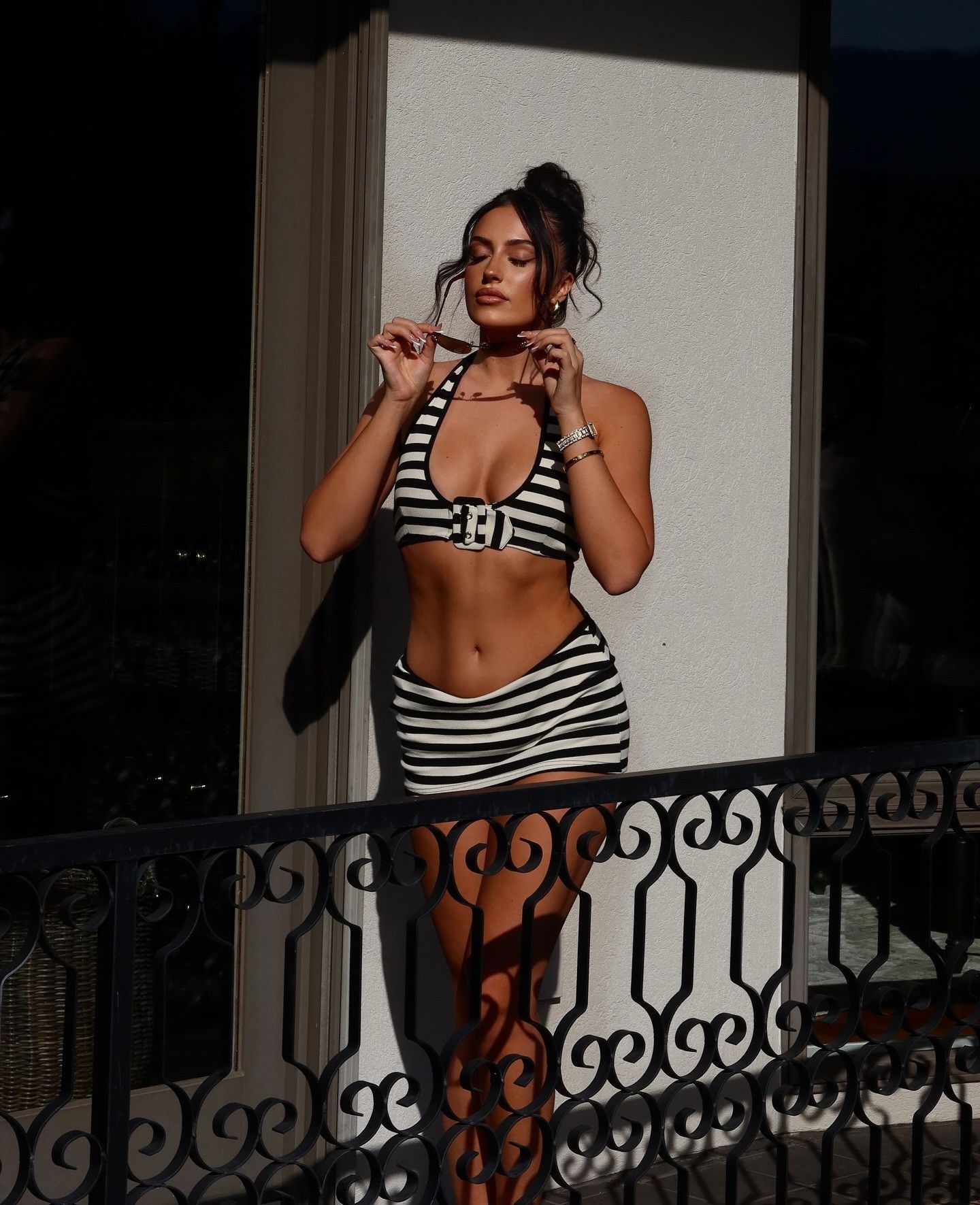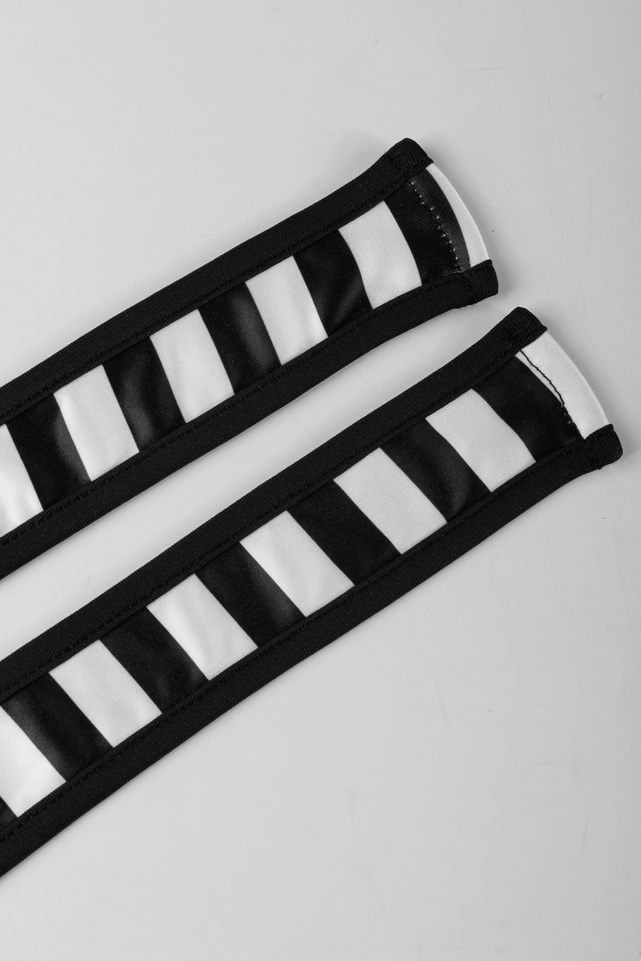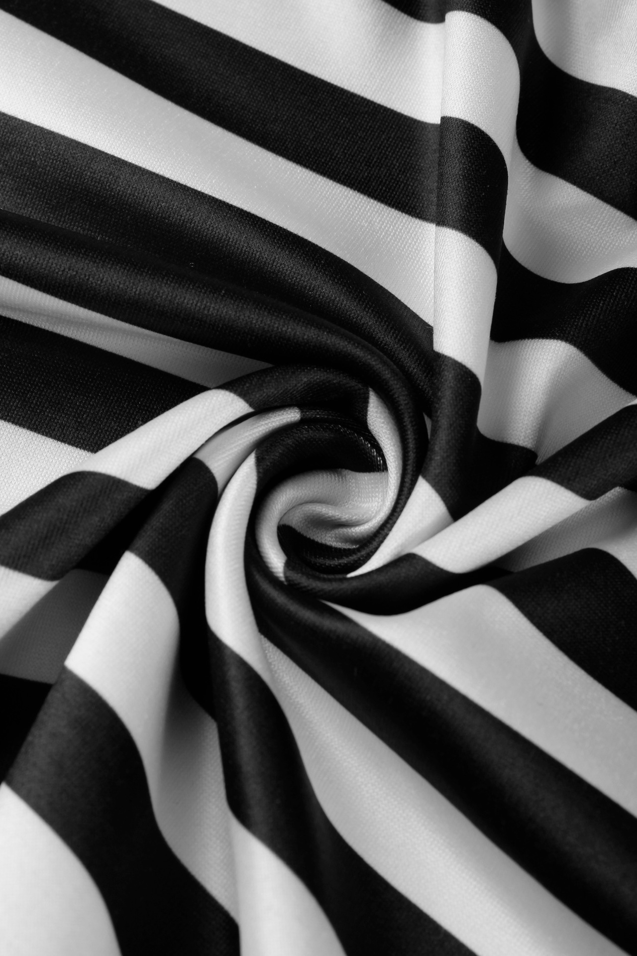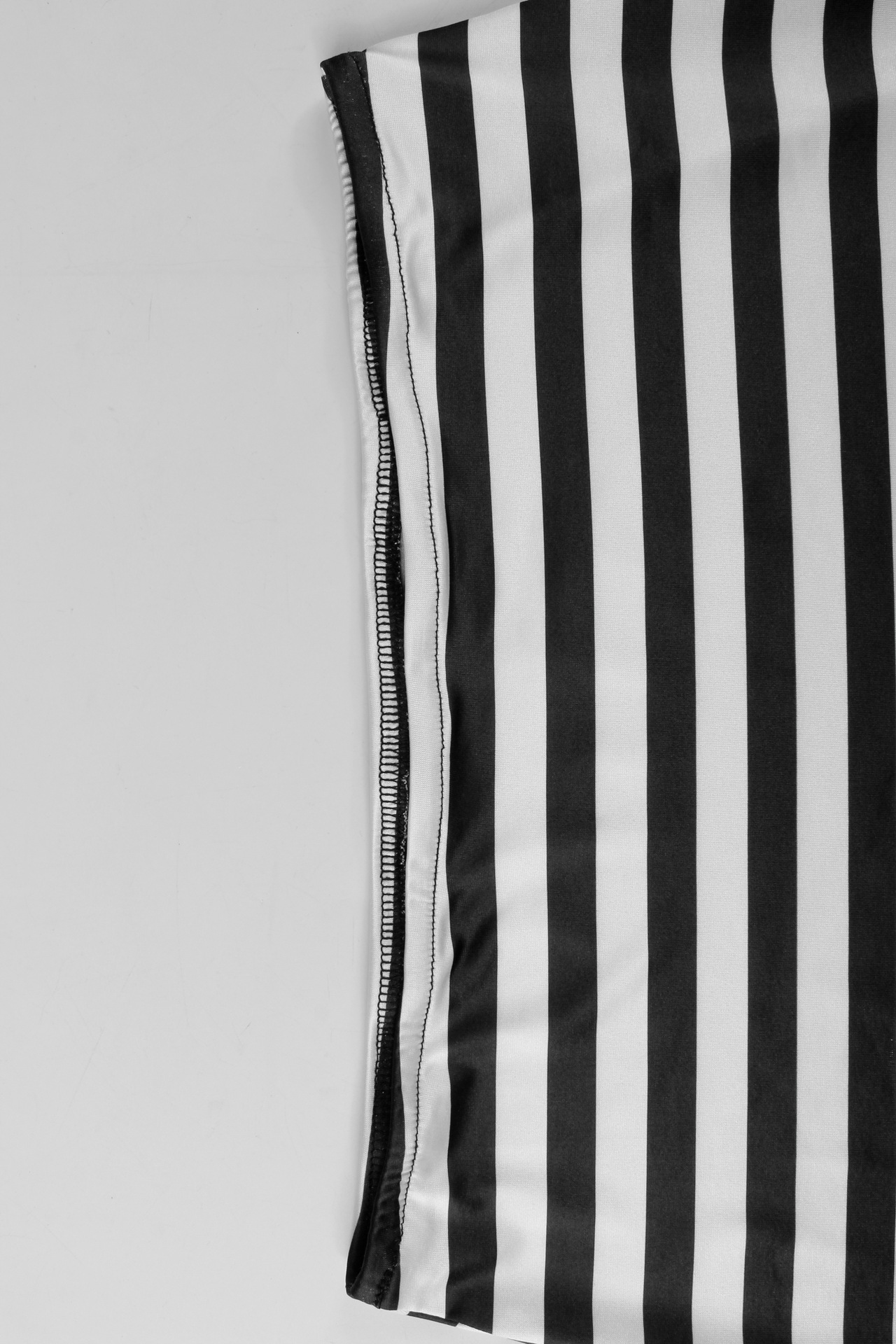 Fashionable Black-and-White Striped Printed Halterneck Sleeveless Midriff-Baring Tank Top And Sheath Mini Skirt Set
