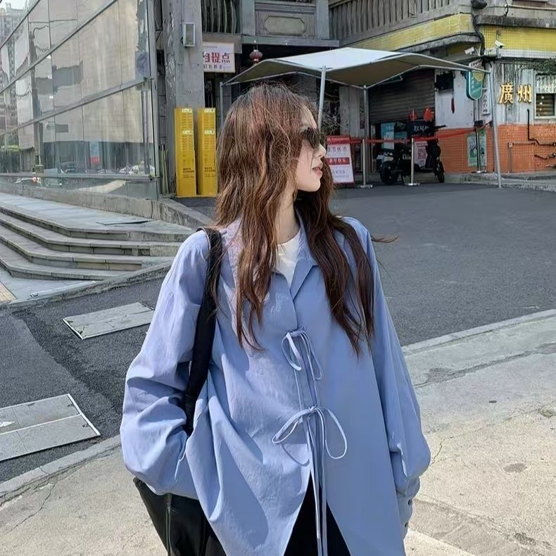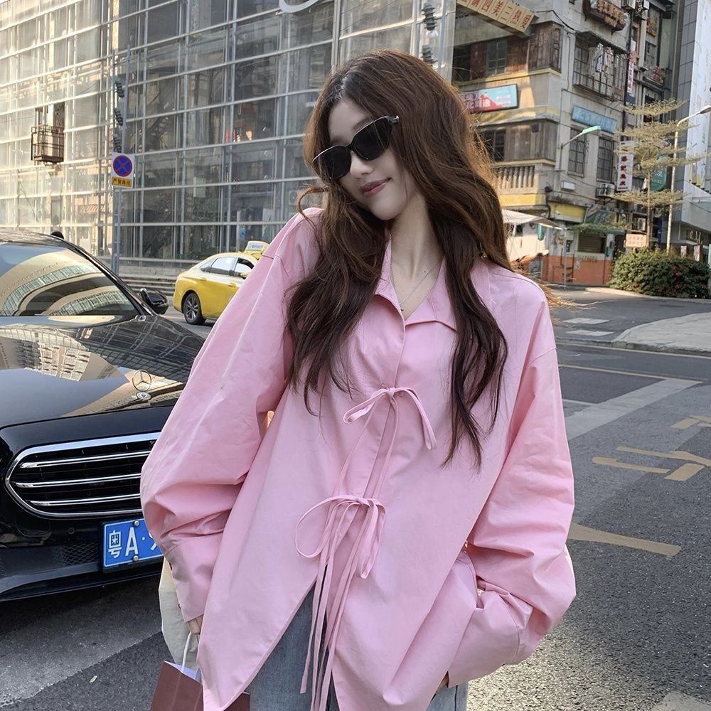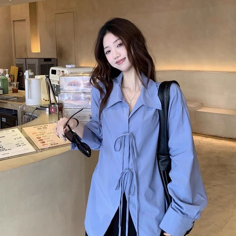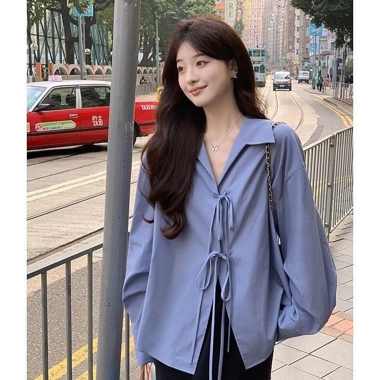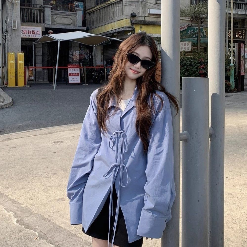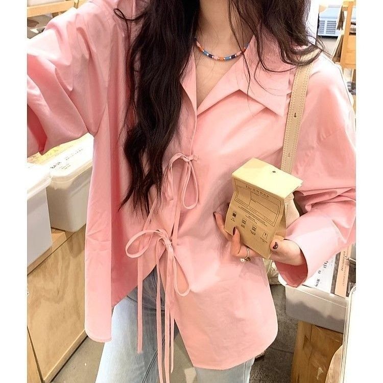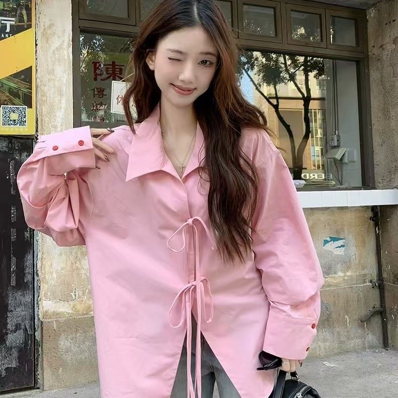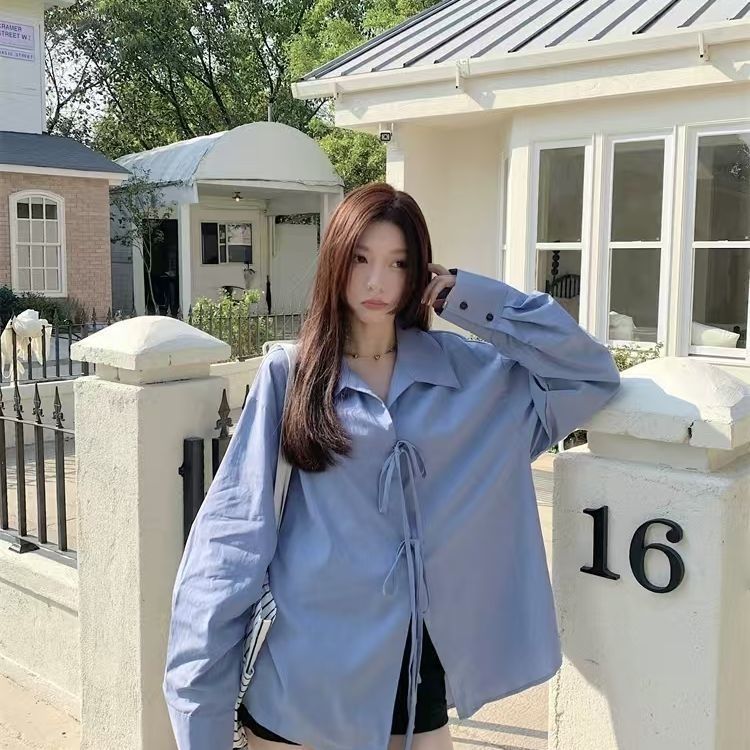 Laid-back Style Bow-Tied Long-Sleeve Shirt