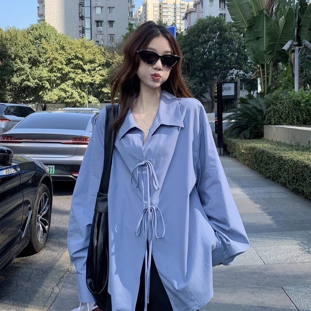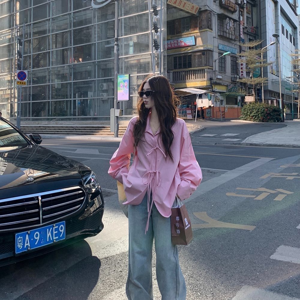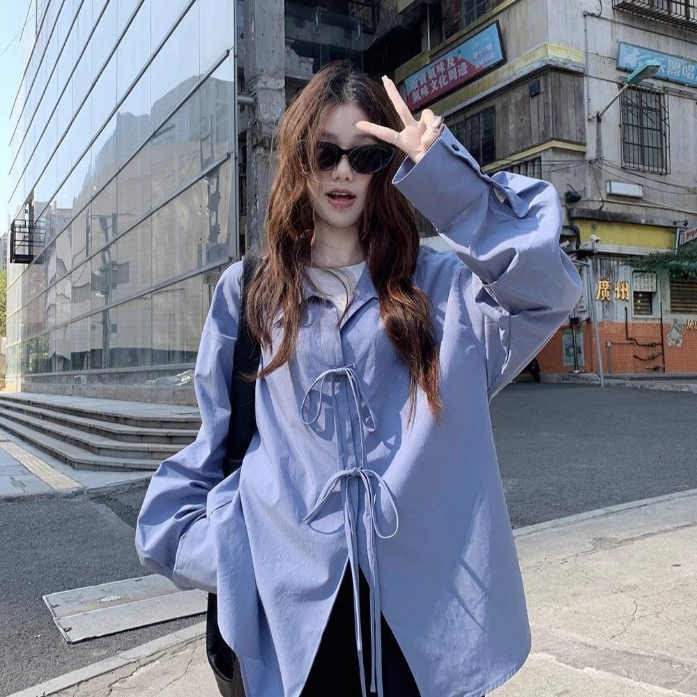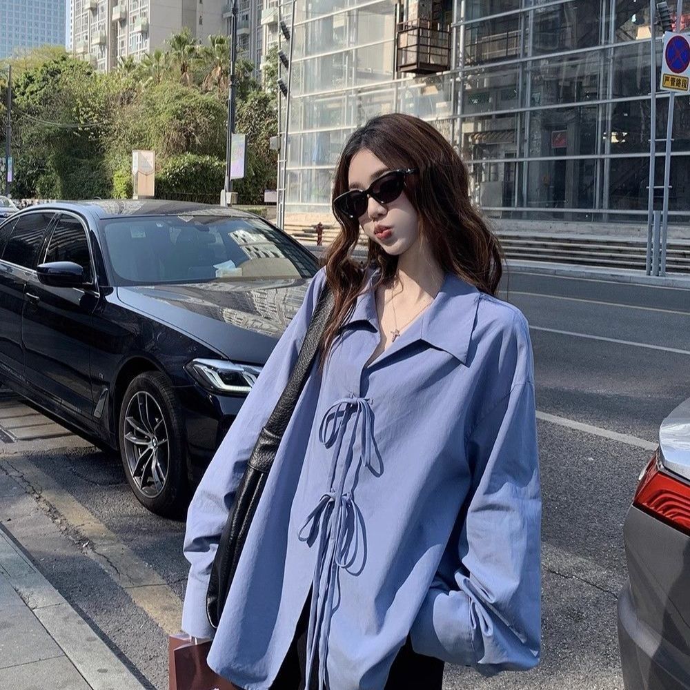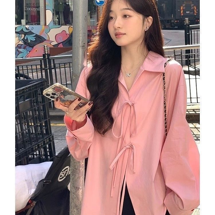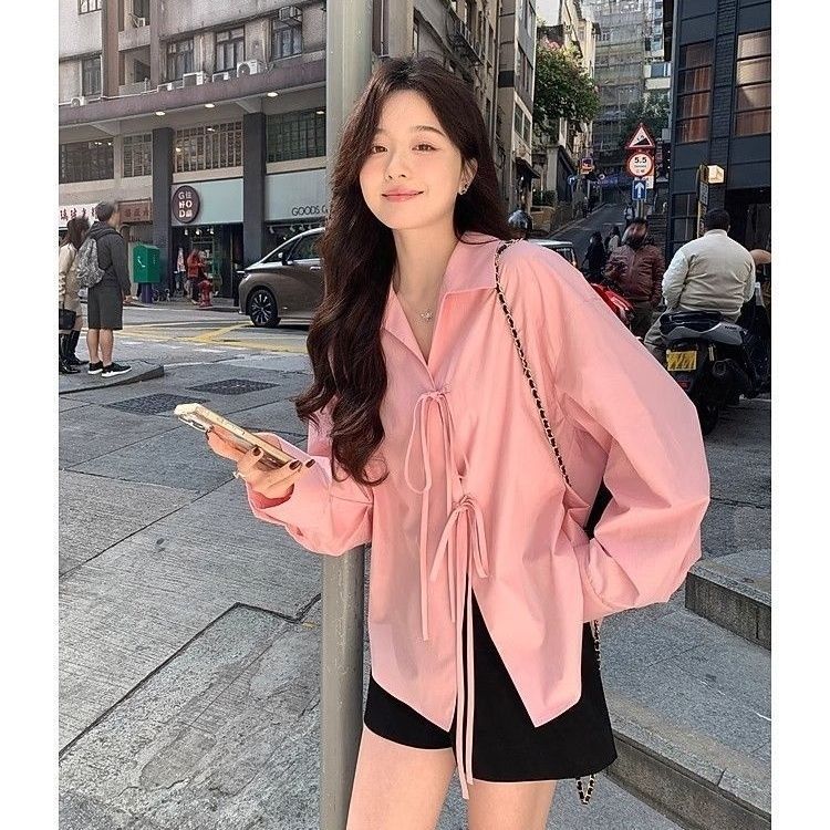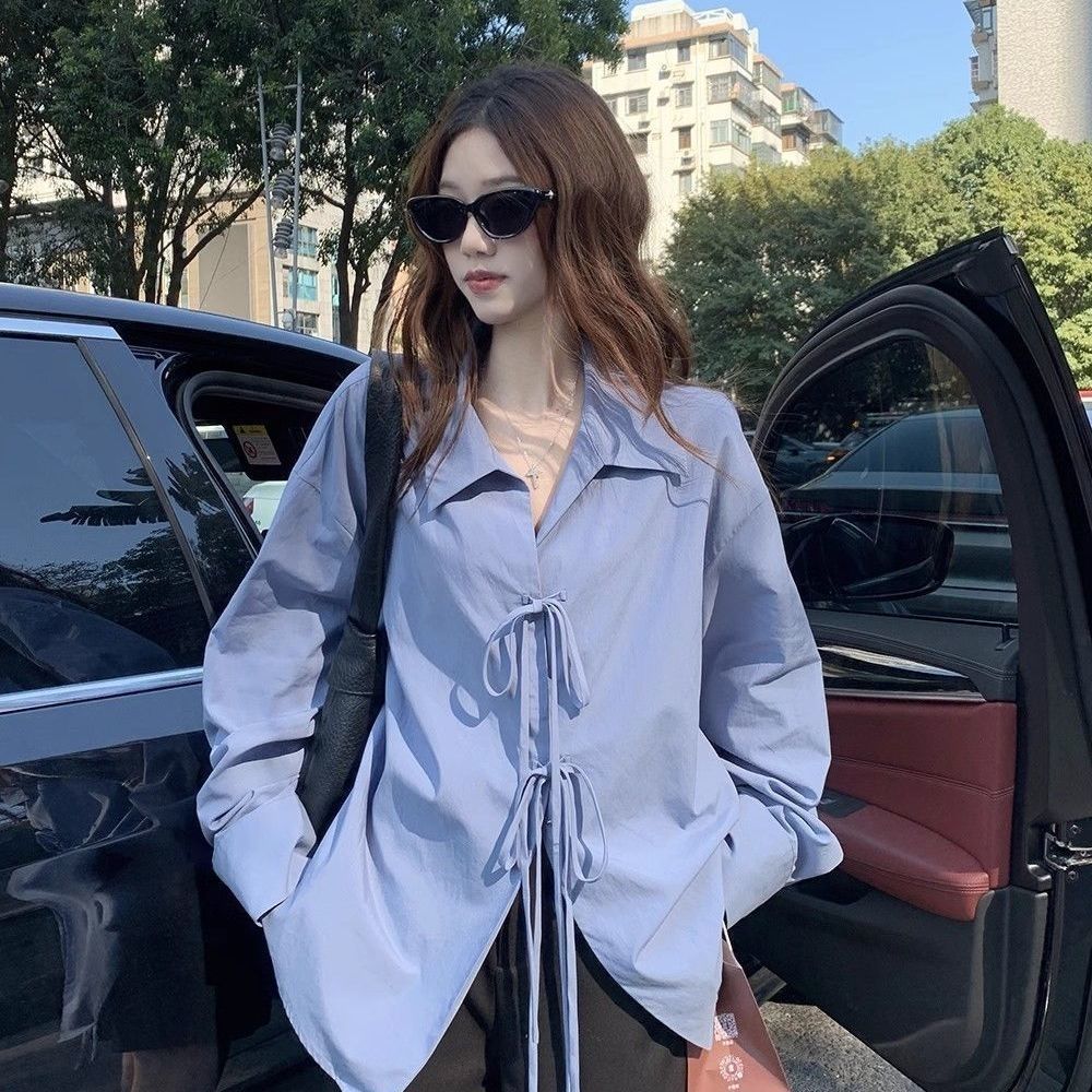 Laid-back Style Bow-Tied Long-Sleeve Shirt