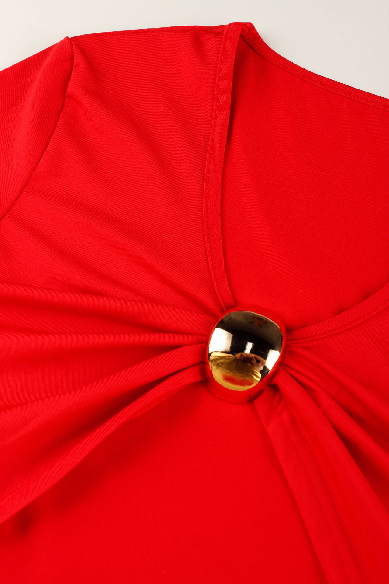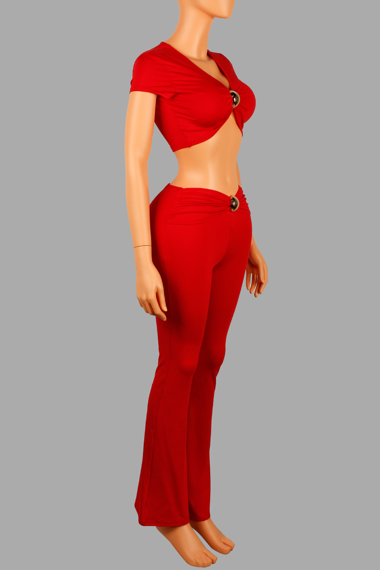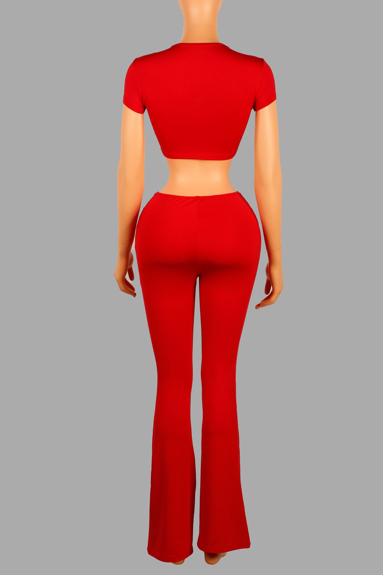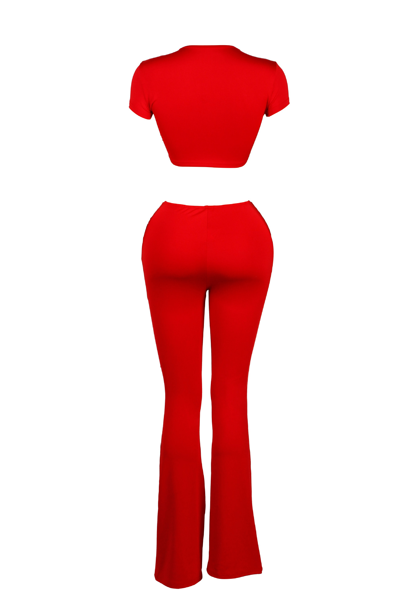 Low-cut V-neck Short-sleeved T-shirt Top With Hardware Waist-length Bodycon Trousers Set
