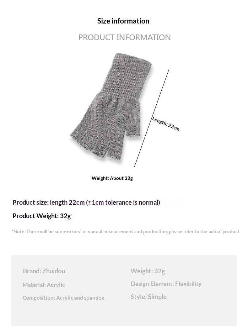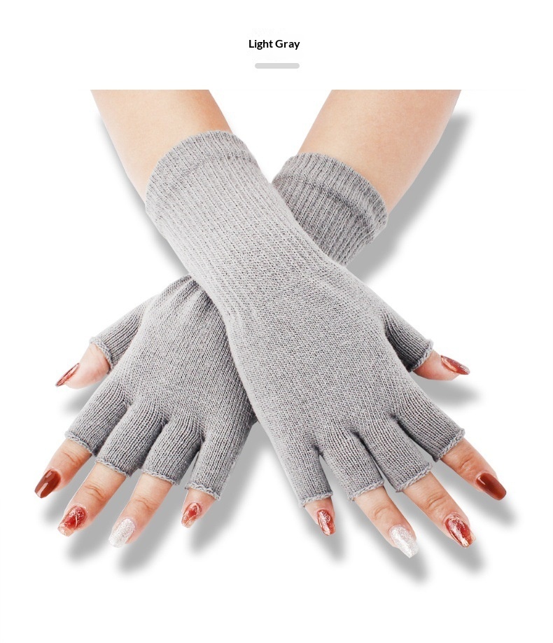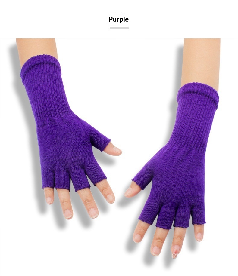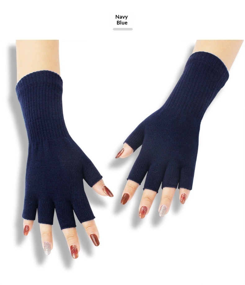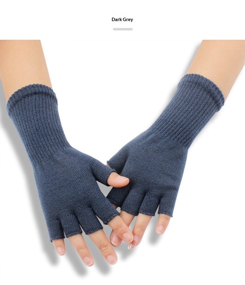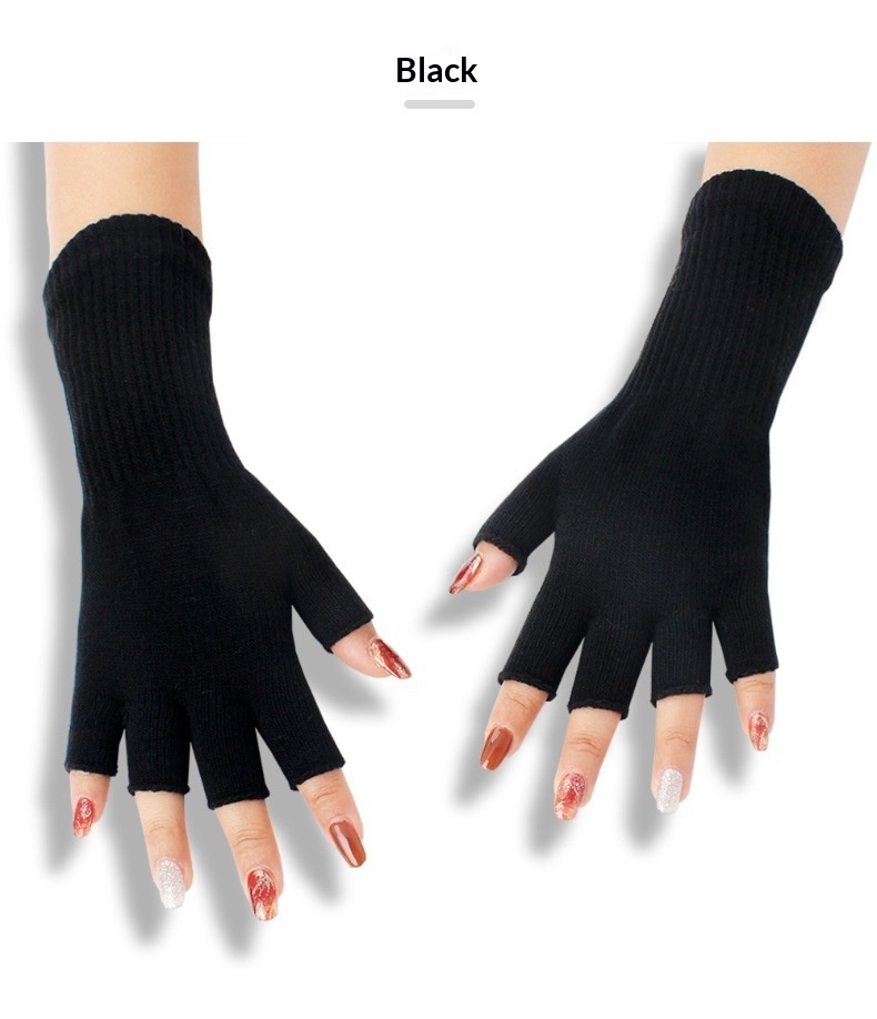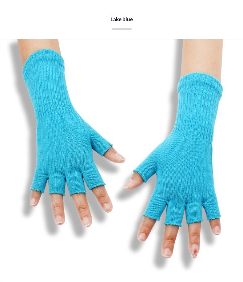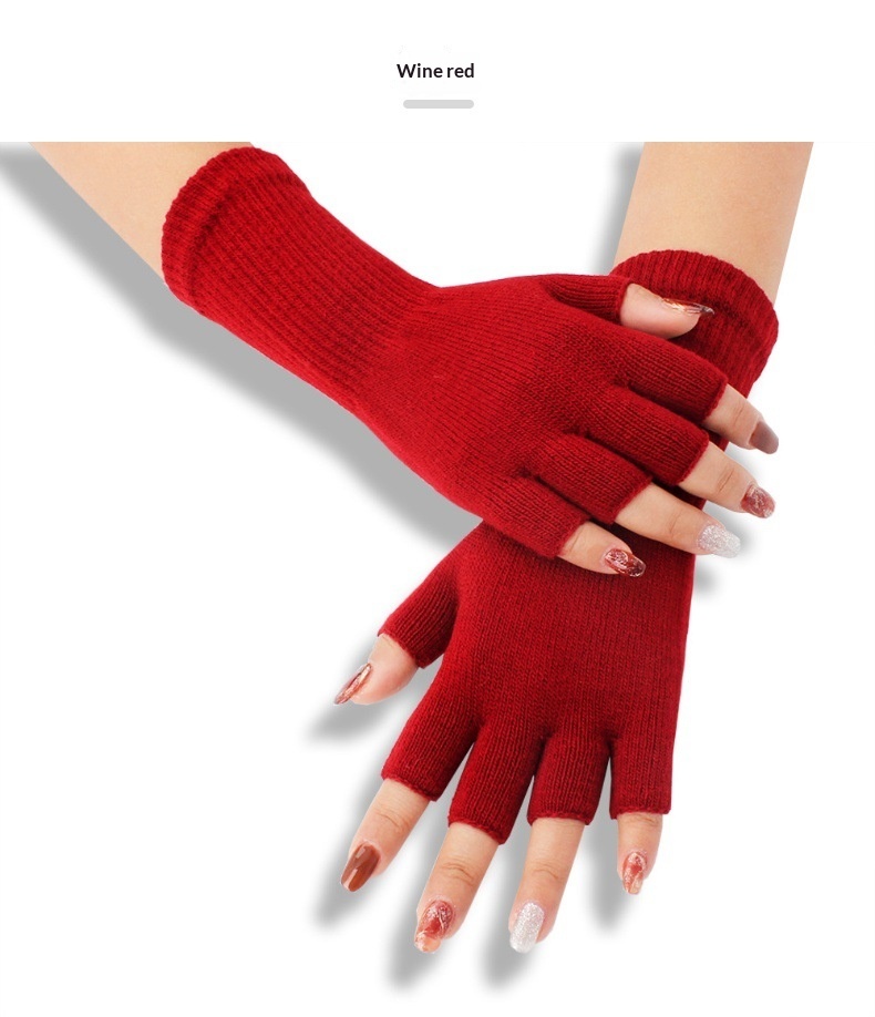 Solid-color Fashionable Acrylic Long-sleeve Ribbed Half-finger Thermal Gloves