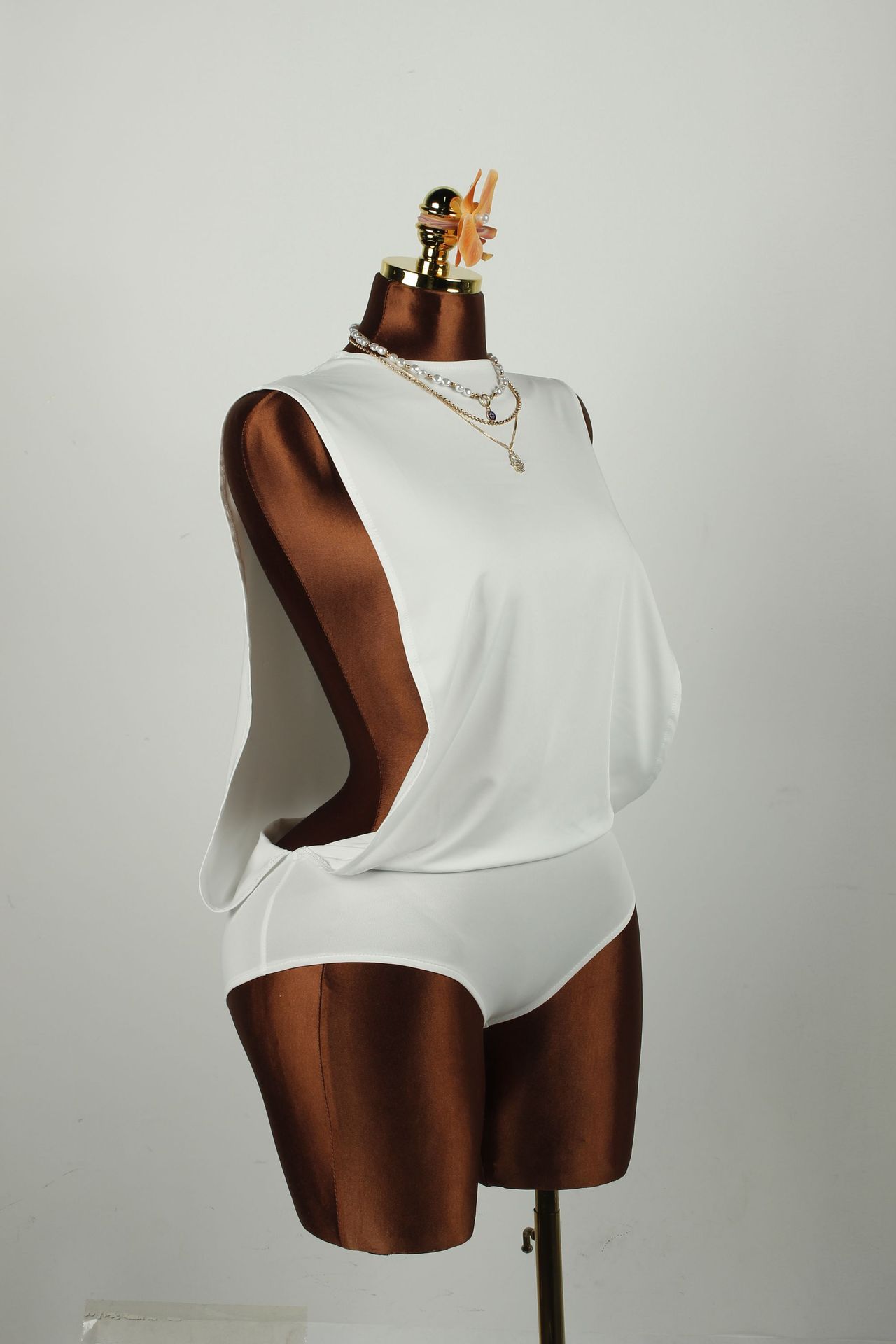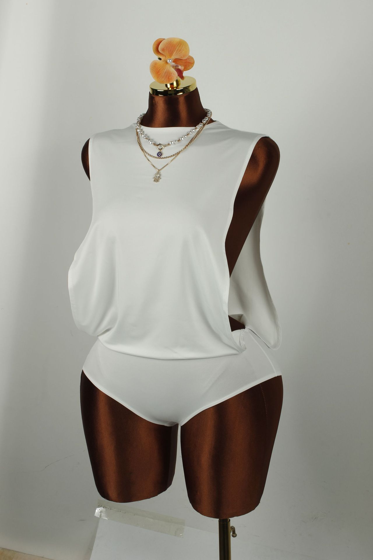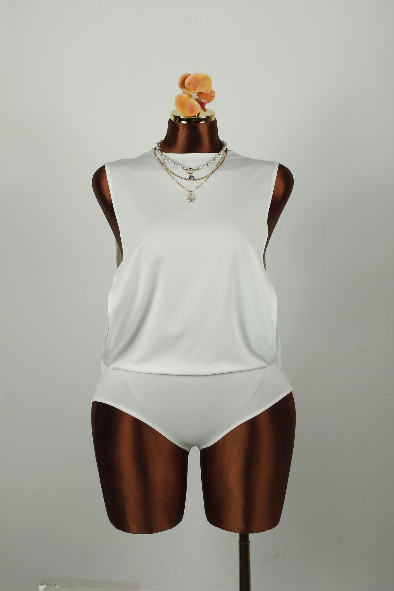 Women's Side-vent High-waist Solid-color Loose-fit One-piece Shorts